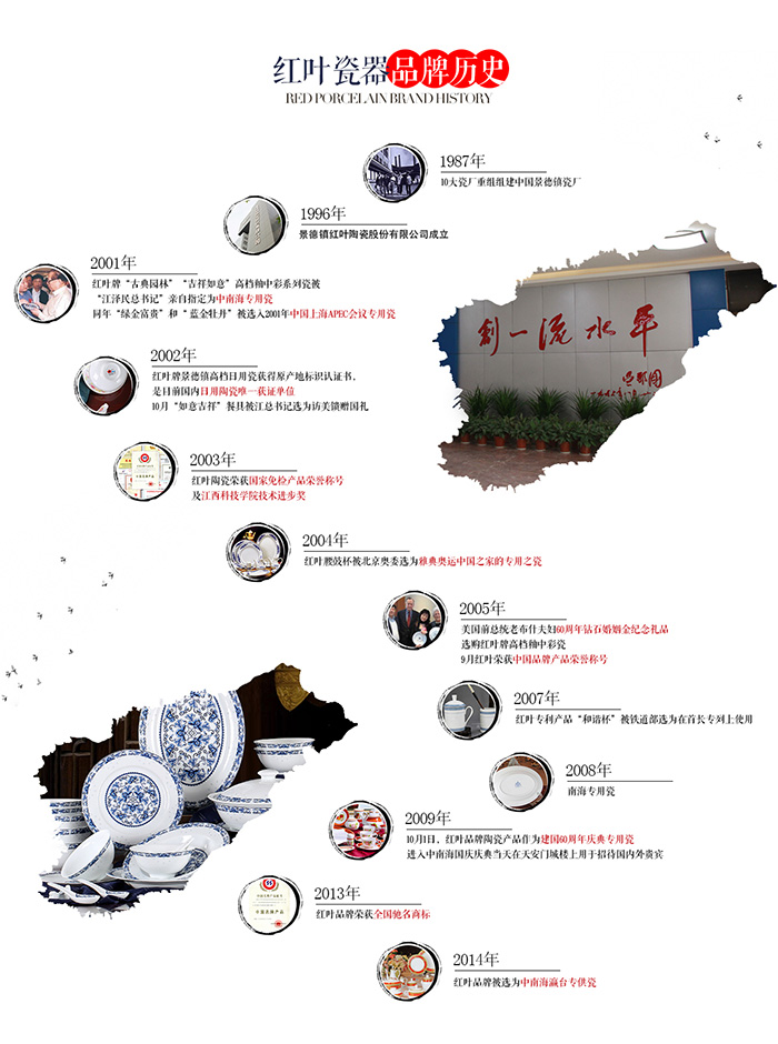 公司于2002年(nian)通過(guo)ISO9001:2000國(guo)際(ji)質(zhi)量體系認證,為拓展國(guo)際(ji)市場奠定基礎。"紅(hong)葉(xie)"牌高(gao)檔細瓷取得了國(guo)家質(zhi)量監督檢驗檢疫總局頒發的原產地標記(ji)注冊證書。