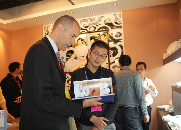 一(yi)位(wei)瓷博會邀請的外國(guo)貴(gui)賓在參觀完我(wo)們的展館后,對我(wo)公司的產品非常感興(xing)趣(qu),表示有意(yi)向(xiang)合作,領取了公司的產品畫冊