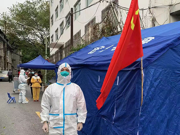 社區“雙報到”,抗疫顯擔當。疫情來襲,黨員穿上“大白”防護服、做好秩序維護、發放健康檢測表、信息錄入、政策宣傳、掃碼查驗、上門進行采集核酸……。在各管控小區,黨員志愿者們的身影,一直在為小區居民們辛苦地付出著。“我們都是小區業主,又都黨員志愿者,在這種特殊時刻更要挺身而出,體現作為黨員的本分,在危難時刻顯擔當。根據防疫工作安排,每天的工作時長都不固定,但我們每天都從半夜工作到凌晨。我們社區大家的配合度都很高,整個小區情況比較平穩,我們覺得能夠在疫情防控工作貢獻一些力量感到很開心。”危永清說道。