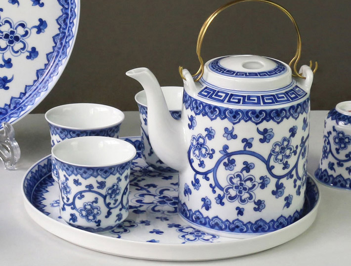 8頭手繪青花茶具盛世藍地