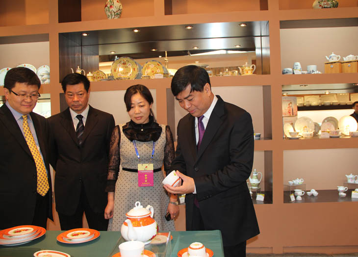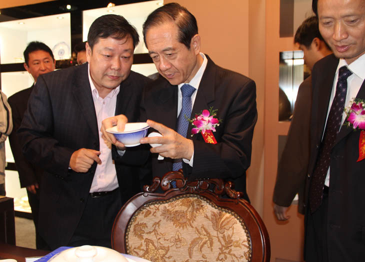 全國(guo)人大常(chang)委會副委員長韓啟德在我公司(si)展館參觀(guan),對(dui)我公司(si)在全國(guo)青(qing)花(hua)(hua)玲瓏及青(qing)花(hua)(hua)日用陶瓷器形與裝飾設計大賽(sai)金獎作品(pin)《憶(yi)漢》非常(chang)感興趣