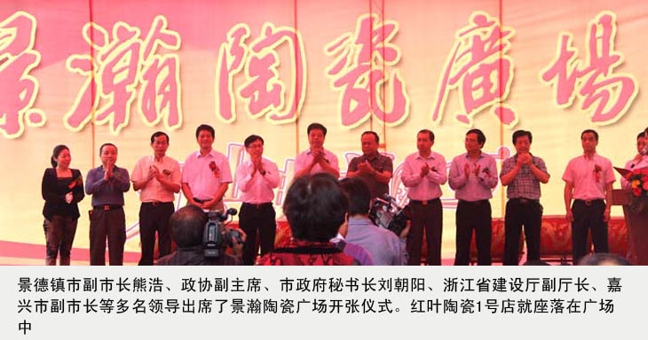 2012年9月(yue)22日,景瀚(han)陶(tao)瓷廣(guang)場開(kai)業(ye)典禮(li)盛大召開(kai)。當天(tian),景德鎮(zhen)市(shi)(shi)副市(shi)(shi)長熊皓(hao)、景德鎮(zhen)市(shi)(shi)政協(xie)副主席(xi)、市(shi)(shi)政府秘書長劉朝陽,浙江省(sheng)建設廳(ting)副廳(ting)長樊劍平、浙江省(sheng)嘉(jia)興市(shi)(shi)副市(shi)(shi)長張(zhang)仁貴出席(xi)了本(ben)次開(kai)業(ye)典禮(li)。