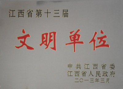 近日(ri),省委(wei)、省政(zheng)府(fu)下發(fa)通(tong)報,表(biao)彰江西省第(di)十三屆“文(wen)明單(dan)位(wei)”。公(gong)司榜上有名。這是(shi)公(gong)司連(lian)續三屆榮獲(huo)省級“文(wen)明單(dan)位(wei)”殊(shu)榮。