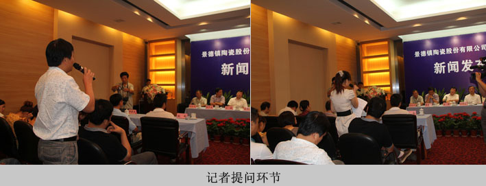 2011年8月8日上(shang)午10點28分,景德鎮陶瓷(ci)股份有(you)限公(gong)司(si)在公(gong)司(si)多功(gong)能廳舉辦國瓷(ci)館落成新聞(wen)發布會。市(shi)人大副主任、市(shi)委秘(mi)書長余振(zhen)泰(tai),市(shi)國資委、市(shi)旅游局、市(shi)瓷(ci)局等60余位領導、省、市(shi)15家新聞(wen)媒體(ti)及公(gong)司(si)有(you)關負責人出(chu)席了新聞(wen)發布會。