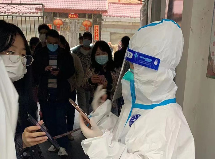 社區“雙報到”,抗疫顯擔當。疫情來襲,黨員穿上“大白”防護服、做好秩序維護、發放健康檢測表、信息錄入、政策宣傳、掃碼查驗、上門進行采集核酸……。在各管控小區,黨員志愿者們的身影,一直在為小區居民們辛苦地付出著。“我們都是小區業主,又都黨員志愿者,在這種特殊時刻更要挺身而出,體現作為黨員的本分,在危難時刻顯擔當。根據防疫工作安排,每天的工作時長都不固定,但我們每天都從半夜工作到凌晨。我們社區大家的配合度都很高,整個小區情況比較平穩,我們覺得能夠在疫情防控工作貢獻一些力量感到很開心。”危永清說道。