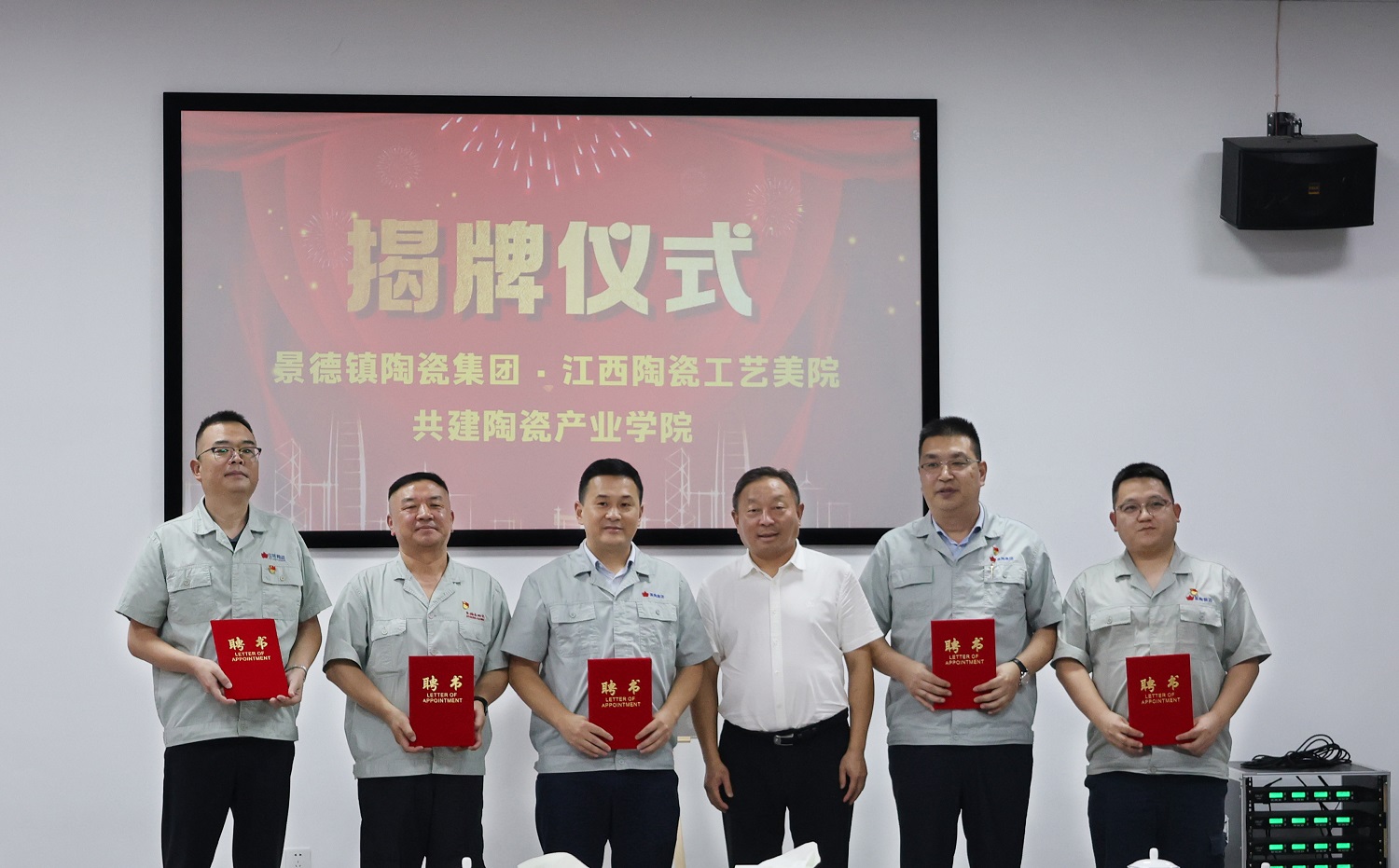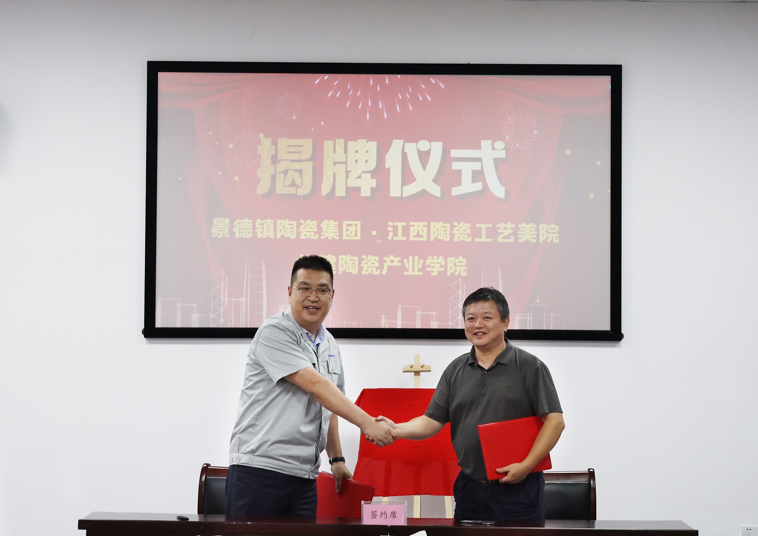 為深入貫徹落實國家推進“一(yi)體兩翼(yi)”重大戰(zhan)略部署(shu),更(geng)好地服務地方陶瓷產業發展,助推陶瓷職業教育發展。8月16日下午,在景德鎮陶瓷集團行政樓一樓會議室隆重舉行江西陶瓷工藝美術職業技術學院與景德鎮陶瓷集團共建陶瓷產業學院揭牌儀式。江西陶瓷工藝美術職業技術學院黨委書記方文龍,黨委委員、副院長朱輝球,景德鎮陶瓷集團黨委書記、董事長鄧景揚,黨委副書記、總經理邢浩,黨委委員、工會主席鄧必春,黨委委員胡軼,黨委委員、副總經理王小勤出席揭牌儀式。學院及企業相關部門負責人參加。