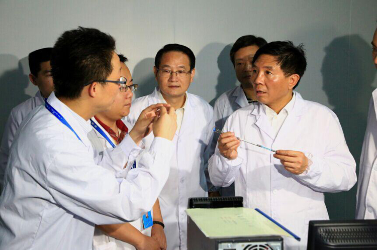 湖南省委副書記孫金龍(右一)在了解公司先進的科研設備及技術操作流程