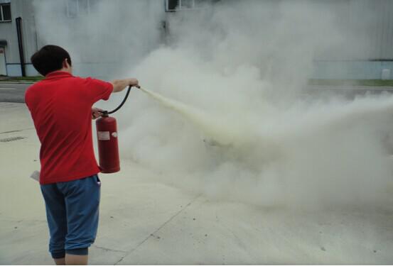 培訓(xùn)最后全體人員從模擬火災(zāi)現(xiàn)場(chǎng)進(jìn)行逃生疏散演練,以及進(jìn)行滅火器滅火、使用消防水管的演練。