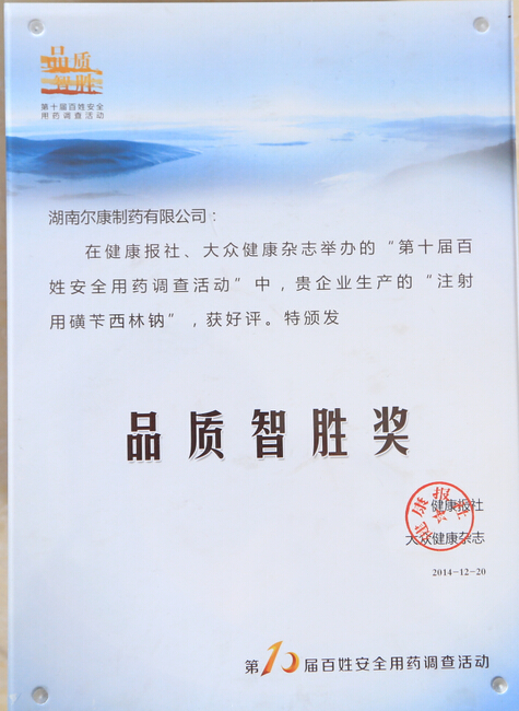 湖南爾康制藥榮獲“品質(zhì)智勝獎”