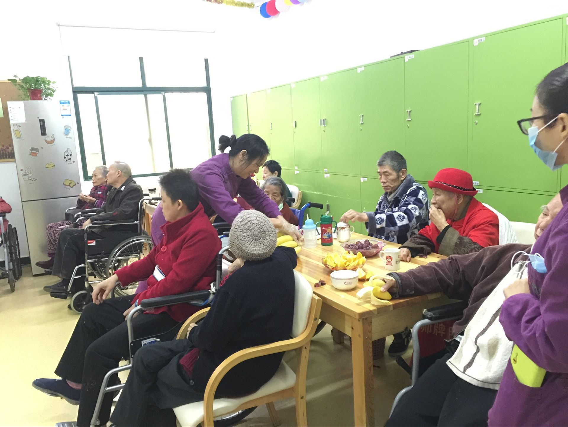 (圖為工作人員幫小分隊(duì)給老人們送上切好的水果)