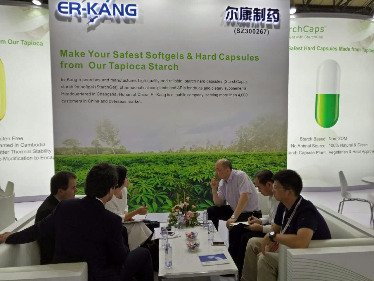 前來(lái)爾康制藥展臺(tái)參觀的客戶絡(luò)繹不絕,他們都對(duì)淀粉膠囊系列產(chǎn)品表示出濃厚的興趣,并有進(jìn)一步合作交流的意向。一位來(lái)自穆斯林國(guó)家的客戶在得知了爾康制藥淀粉膠囊已經(jīng)獲得了素食協(xié)會(huì)認(rèn)證、猶太教Kosher認(rèn)證和穆斯林Halal認(rèn)證等多項(xiàng)認(rèn)證時(shí),他驚喜地說(shuō)道,淀粉膠囊符合他們國(guó)家的宗教信仰,而且又有利于人體健康,在他們國(guó)家推廣會(huì)有很大的發(fā)展前景,他期待能與爾康制藥進(jìn)行深入合作。