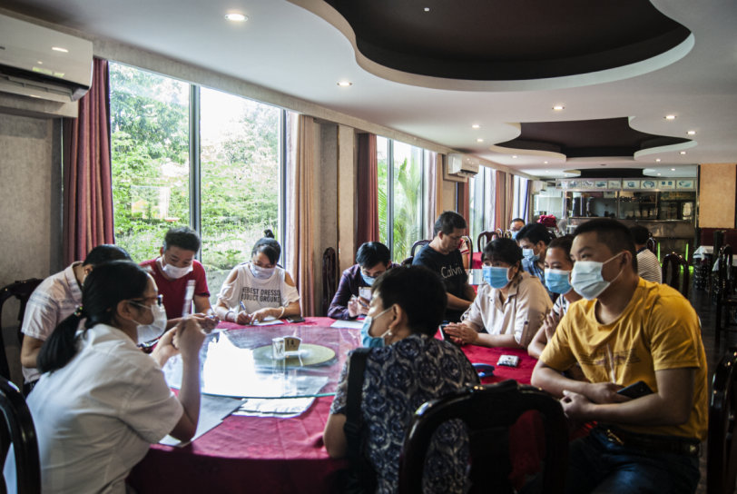 隨后,現場應聘人員從個人能力、求職原因、家庭情況等方面進行分組面試。應聘者中大多數都是在柬工作中籍人員,是難得的會柬語、對當地情況十分了解的技術工人。受疫情影響,許多工人所在的工廠停產關閉,對他們的生活造成了嚴重的影響,因此他們迫切需要一份穩(wěn)定的工作。