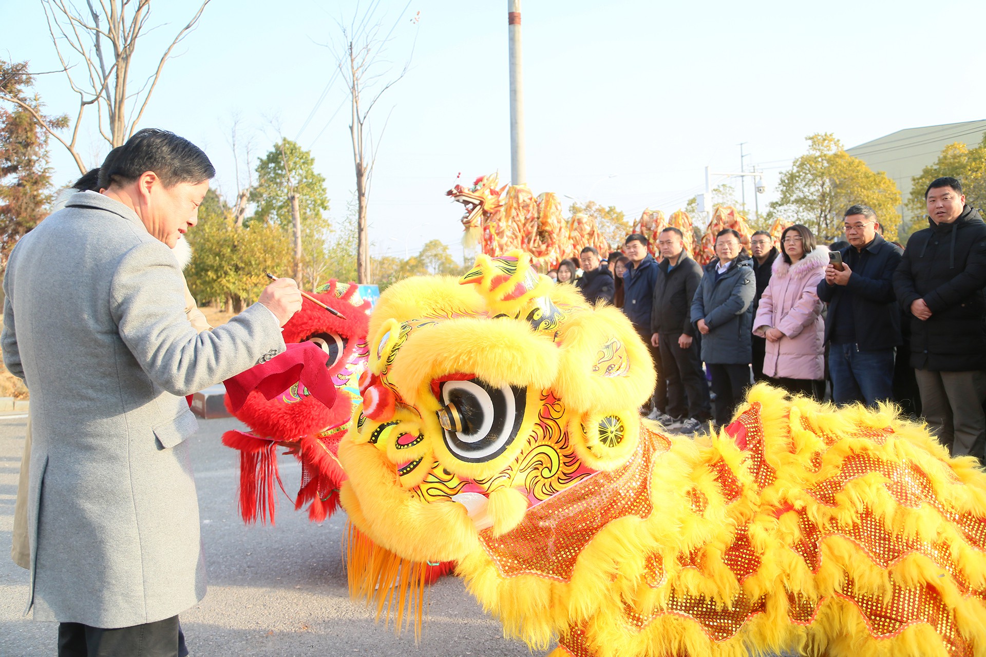 爾康制藥總部開工儀式上的龍獅表演